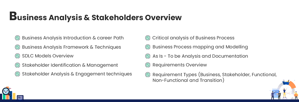 Our self-learning program has a quality course content crafted by industry experts who are already excelling in the field of business analysis. They have carefully examined, prepared and added resources like eBooks, PDFs, theoretical content, practical tutorials, live sessions recorded videos, question banks asked in the business analyst certification exams and the interview rounds. You will have extreme industry exposed knowledge inside the material.
