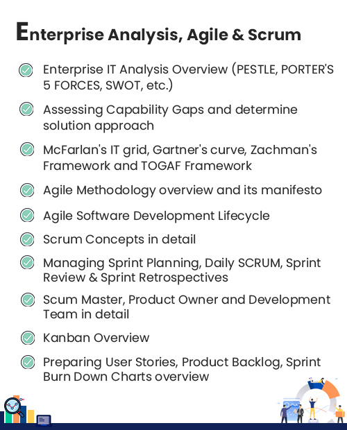 Learn and grow your career despite a consuming job from our convenient, easy-to-study, experts curated business analysis self-learning program.