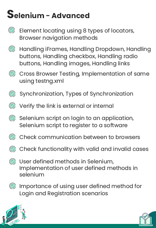If you have enough time to sit at fixed hours every day to learn, you can go for the scheduled QA certification training with us. But if you are a working professional who doesnât have fixed time each day to learn, you can go for the self-learning QA testing training , where you just have to sign up, pay an affordable amount and get access to QA live sessionsâs recordings that you can watch and learn from like web series.