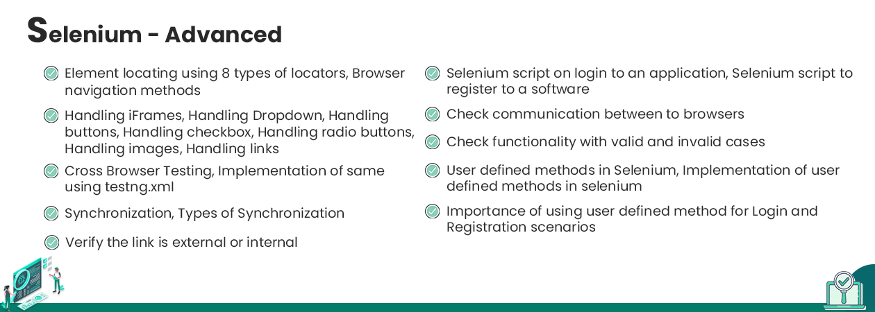 Our self-learning QA training for beginners to corporates has been consciously designed and framed in a way where recorded sessions feel similar to real-time classrooms. The recordings have a clear display and sound quality. The learners can watch and learn from the video while maybe commuting from a cab or during the breaks. If you have doubts pertaining to certain QA concepts, you can straightway ask from our instructors via quick emails and chats.