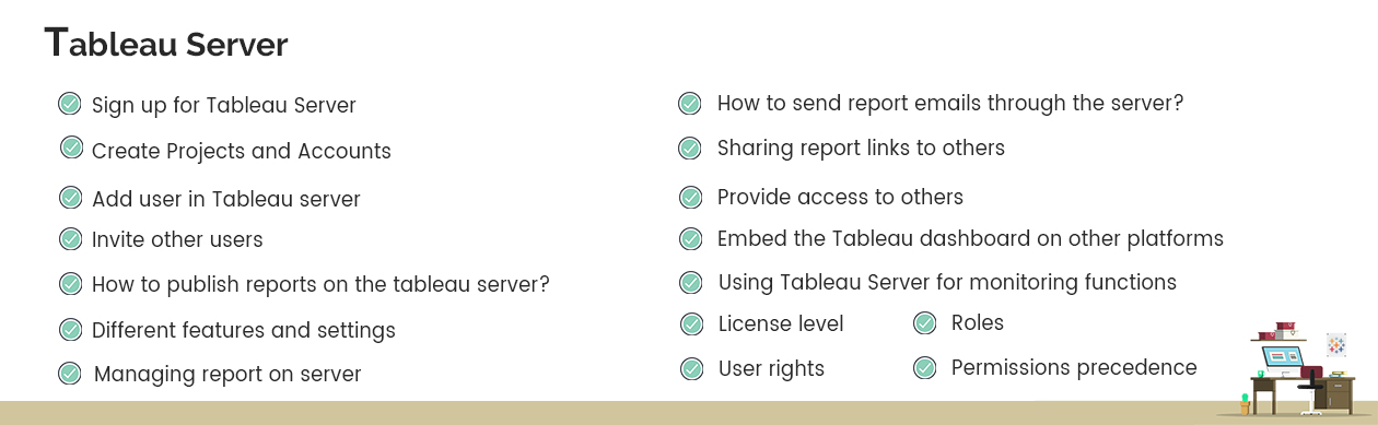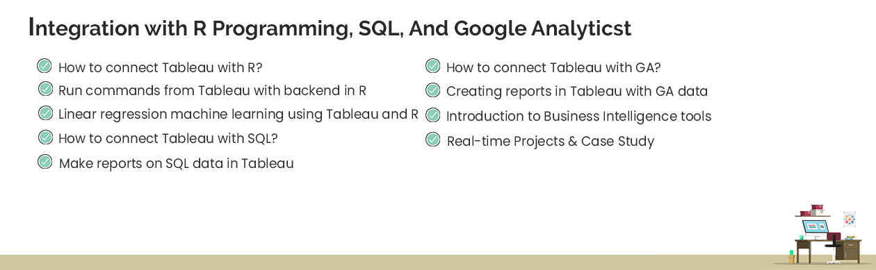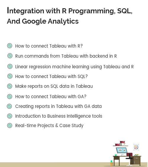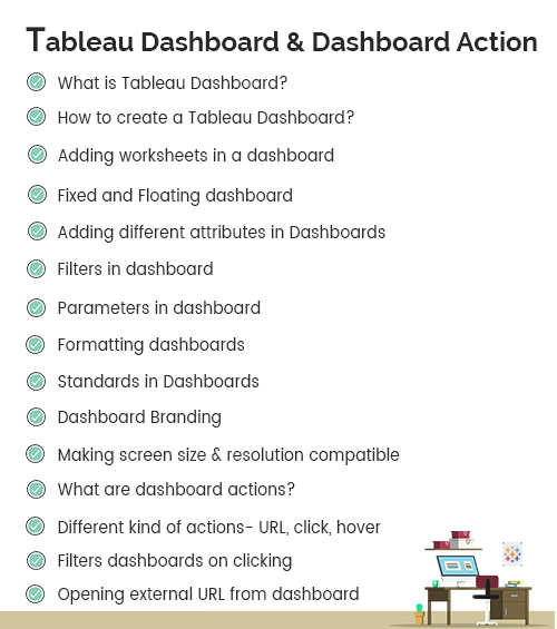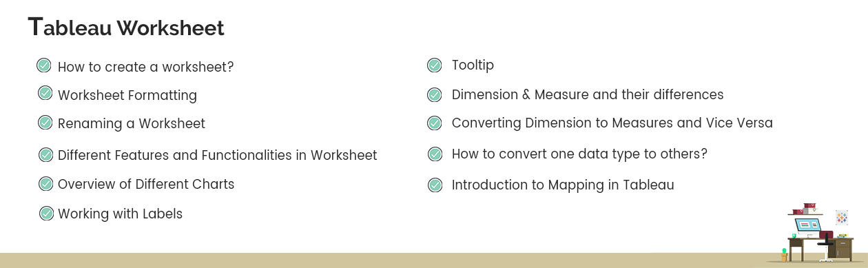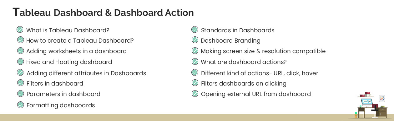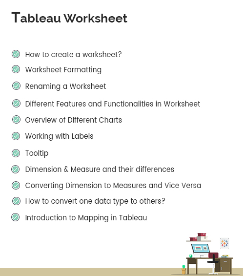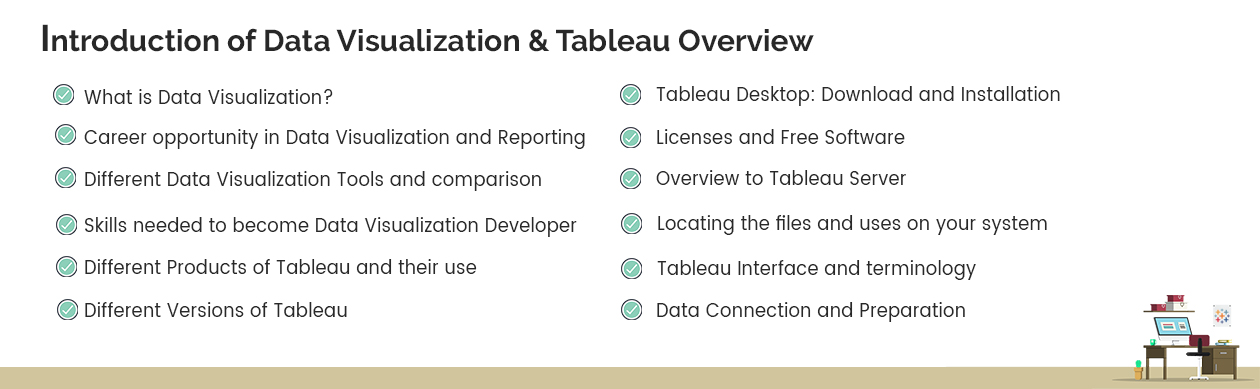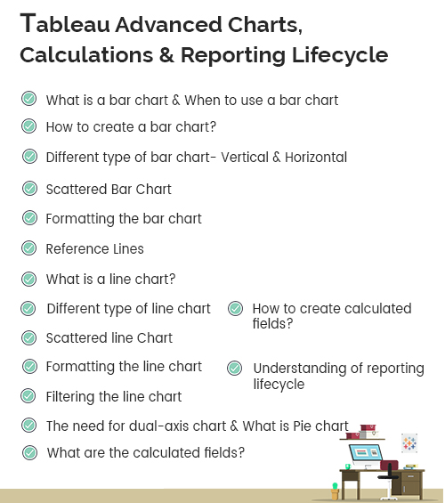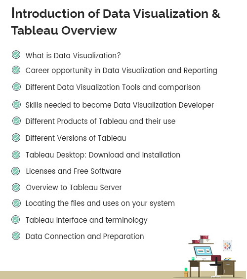While inside our self-learning program, you will be learning every inch about Tableauâs handling as:
